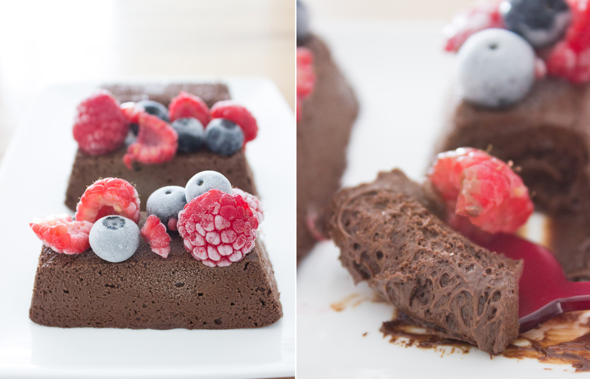 Démouler les mousses 2 min avant de déguster. Recouvrir de fruits rouges.